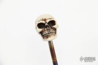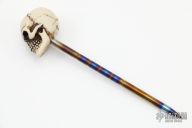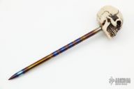 1/4" x 3" heat colored and machined titanium with resin skull handle. Comes with a zippered case. Excellent condition.