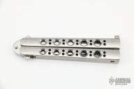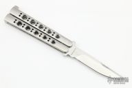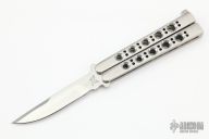 This vintage Model 35 Balisong from benchmade features a polished drop point blade with swedge. The handle is comprised of integral steel construction. T latch on pommel. Includes original plain white box, paperwork and nylon sheath. Minor scratches on blade, but otherwise great condition. Blade Steel: 441C