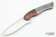"I consider myself a part time Hobbyist knife maker that works in the shop between October and April every year and make about 5 knives a year total. I have been fascinated with cutlery from as far back as I can remember. I started out collecting factory knives. But I could always find faults with them. I then moved into the custom world and sold all the factory knives. Then I figured why not try my hand at making knives. So I slowly bought parts, knife making books and a few machines and gave it a go. In 1996 when I got a little older and had a few spare dollars to play with I tried my hand at cutlery but didn't have much success at the time. Soon after that I bought my first computer and researched anything to do with cutlery. I came upon Bladeforums which was the only knife related forum out there. They soon had a chat forum put on their server and after a short time on the chat forum I found out I was talking to Kit Carson every evening. I didn't know who Kit was at the time other than a knife maker. But Kit was very gracious and helped answer my many, many questions. In 1998 after a few months of questions, I was invited to Kit's house to learn. Since then, I have been back there many times and think the world of the entire Carson family, true southern hospitality at its finest. In 1999 George Young helped me with learning file work and working in Stellite/6K. I was fortunate to be able to buy some of Georges' equipment since he was winding down with his knife making career. In 2000 I was invited over to Darrel Ralph's house. Darrel helped me set up a few machines I bought. He built me mirror blocks and helped me to refine my knife making skills by doing my first auto knife under his supervision. In 2000 Alan Folts was very helpful in helping me obtain color on my knives with anodizing. Alan is the Ti coloring wizard. In 2007 Lee Williams helped me to understand the geometry behind the flipper. My flippers worked OK, then but Lee really helped me to get them dialed in to flip with just a finger."