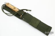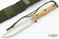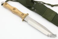 This I-5 by EK Knives features a satin finish blade with false top edge and a full tang construction.  .197" Blade Stock.  1.271" Blade Depth.  The handle has a brass guard and paper micarta scales. Comes with nylon sheath and original box. Light sheathing marks are visible on the blade otherwise the knife is in excellent condition.