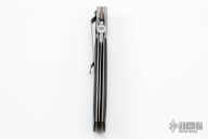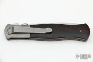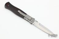 This linerlock Folding Dagger from John W. Smith features a hand-rubbed satin finish blade with false top edge, notched thumbrest, and thumb disc. Bead Blast Titanium bolsters and rosewood scales over titanium liners. Smooth action and strong lockup. Few very light scratches on clip and bolsters. Excellent condition.