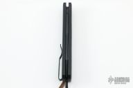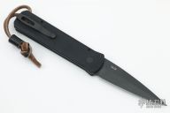 This Godson from Pro-Tech Knives features a black finished blade with swedge. The handle has a black aluminum frame with a GSD leather inlay, black stainless steel tip up clip. Comes with original box and papers. Excellent condition.