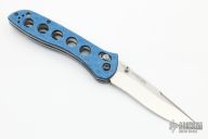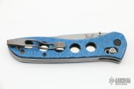 This Benchmade 710 McHenry has an D2 stonewashed drop point blade with dual thumb studs. The handle has blue carbon fiber scales over steel liners with a stainless steel tip up clip. Excellent Condition.
