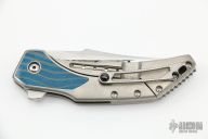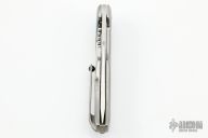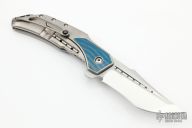 This Astio by Todd Begg features a mirror polish tanto recurve blade with fullers and flipper tab. The handle has a satin finished titanium frame with micarta inlays, jewel iced titanium backspacer and tip up clip with ceramic ball, jewel iced titanium pivot collars. Rides on ceramic IKBS, nice detent, lockup and blade seating. Excellent Condition.  Comes with a zippered case and COA dated June 2019.