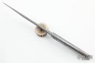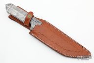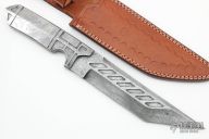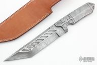 This knife by ITAC features a Damascus tanto blade with .261" blade stock and 1.732" blade depth, full integral construction. Comes with a leather sheath and zippered case. Excellent condition.