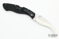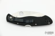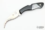 This Civilian Lockback Folder by Spyderco has a satin finished, fully serrated hawkbill blade with thumb hole. The "A" side of the handle is comprised of mother of pearl and black jet overlays over a steel frame and a black G-10 with stainless steel backspacer/ lock, has a tip down clip. Excellent condition. Comes with a Spyderco zippered case.