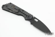 This MSC SNG framelock folder by Mick Strider features a black blade and a MEFP aluminum and flamed titanium frame and tip up titanium clip. Includes Hinderer "Lock Bar Stabilizer" for maximum reverse lock retention. Nice detent, lockup and blade seating. Has a light scuff on the clip, otherwise excellent condition.