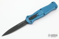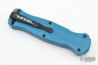 "Introducing an OTF like none-other.. The new Infidel® is rapidly making believers out of many a skeptic. Built for strength and reliability the patent pending double-action mechanics get it done over the long haul. Grab on and you will find the handle grip rock-solid with its patented machined in Presidio® style bi-directional tread pattern, and overall generous sizing for gloved hands. Intuitively pressure the release-slide forward and its spear-point edged steel fires and locks up with a unique three-point retention system with amazingly negligible blade play. Reverse the process and the blade retracts in a rapid blur of motion. The Benchmade Infidel is a special operator’s fantasy come true." Excellent condition. Comes with original box and papers.