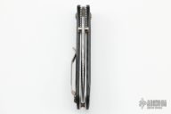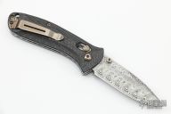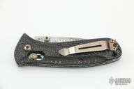 This Benchmade 525-81 Mini-Presidio Axis #532 features an acid-etched Hakkapella Damasteel stainless Damascus drop point blade, auto-axis ambidextrous locking mechanism, and hand finished carbon fiber scales over jeweled liners. Hand polished and heat colored bronzed hardware, clip, barrel spacers, and thumbstuds. Includes original hard case and papers. Excellent Condition.