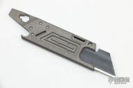 This Rexford RUT (Rexford Utility Tool) from Todd Rexford uses a standard utility razor blade. Blade can easily be replaced. This piece features a functional lanyard hole, flat head screwdriver/pry tip, and bottle opener. Excellent condition.