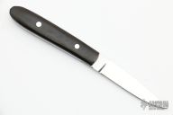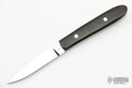 This Small Utility by WC Davis features a mirror finished drop point blade and black linen micarta scales, .109" blade thickness and .532" blade depth, full tang construction. Excellent condition.