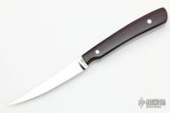 This Small Utility by WC Davis features a mirror finished drop point blade and black linen micarta scales, .126" blade thickness and .501" blade depth, full tang construction. Excellent condition.
