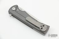 This Chaves Ultramar Street Liberation features a drop point belt finished blade with the Chaves logo. The handle features a stonewashed titanium frame with a matching skull pocket clip (positioned for tip up carry), and a titanium backspacer.  Includes a secondary titanium pocket clip. New From Maker!