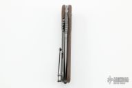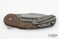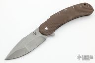 This Field Grade Bodega has a tumbled spear point multi-ground blade with IKBS. Handle is brown G-10 with a tumbled titanium lock and titanium tip up clip, titanium backspacer. Nice detent, lockup and blade seating. Excellent Condition.