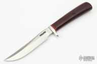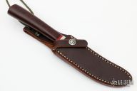 This Model 7-5 by Randall Made Knives features a satin finished upswept blade with .158" stock and .902" blade depth, hidden tang construction. The handle has a nickel silver guard with red spacers and a red linen micarta grip. Comes with brown leather sheath, original papers and a sharpening stone. New from maker.