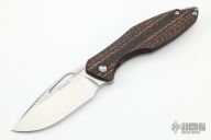 This Arius by Koenig knives features a tumbled finished blade with satin finished flats. The handle has a bead blasted and milled titanium frame, pattern woven carbon fiber front scale, titanium backspacer and tip up clip with hidden screws. Has ceramic bearings and a ceramic detent ball. Nice detent, lockup and blade seating. Comes with original box and COA dated May 23, 2022. New from maker!
