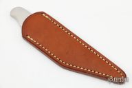 This Kiridashi style "tailor's" knife by Randall Made Knives features a satin finished blade with notched thumbrest, .116" blade stock and .866" blade depth. Non-catalog Randall item. Comes with a brown leather slip sheath. Hard to find. Excellent condition.