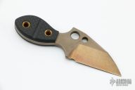 This Plan C from Mr. Horton features a chisel ground tumbled bronzed blade with swedge, .186" blade stock and 1.316" blade depth, full tang construction. The handle has green carbon fiber scales. New from Maker!