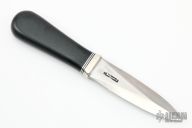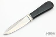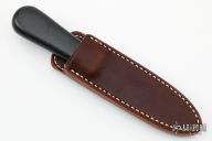 This Model 24 Guardian by Randall Made Knives features a satin finished double-edged blade with notched finger rests, .166" blade stock and .992" blade depth, hidden tang construction. Black linen micarta grip with black/duralumin spacers and a nickel silver guard. Both edges of the blade are sharpened with 1" of thumb notches. This model was designed in 1978 for use by police, undercover agents and law enforcement personnel for self-protection and as a back-up weapon. Comes with a brown leather sheath w/ boot clip and original paper wrapping. New from maker.