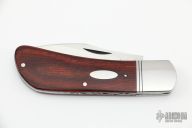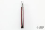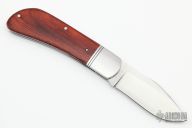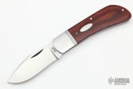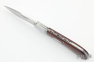 This Nessie by Phil Jacob features a hand rub satin finished blade with nail nick. The handle has threaded stainless steel bolsters, rosewood covers, stainless steel liners with fileworked spines and spring with filework.  Has half-stop, flush in all positions. Comes with a zippered case. New from maker at the 2022 Blade Show.