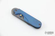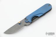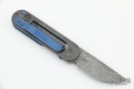 This Bean folder by Serge Panchenko features a tumble finished multi ground tanto blade with single thumbstud. The handle is tumbled and andoized finished titanium with a tip up clip. Has a detent to hold the blade in position open/closed, but it does not lock. New From Maker.