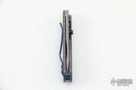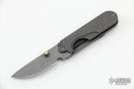This Bean folder by Serge Panchenko features a tumble finished multi ground tanto blade with single thumbstud. The handle is tumbled finished titanium with a tip up clip. Has a detent to hold the blade in position open/closed, but it does not lock. New From Maker.