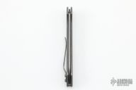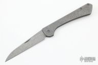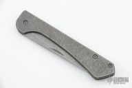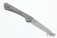 This production slipjoint folder by Serge Panchenko features a stonewashed, M390 drop point blade with nail nick. The handle is stonewashed titanium with a tip up clip. Has a halfstop, flush in all positions. Comes in original packaging. New from maker.