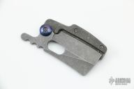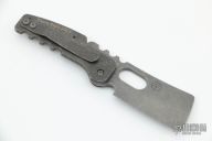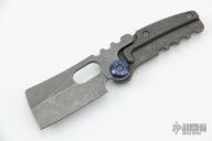 This Custom Thorn Gen3 friction folder from Serge Panchenko features a chisel ground stonewashed blade with thumbhole and notched thumbrest. The handle is stonewashed titanium with stonewash ti backstop and Timascus pivot ring, stonewashed tip up titanium clip. Comes with original packaging and card. New from maker.