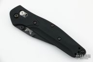This Osborne designed Benchmade feautres a black plain edge blade, black aluminum handle, tip up reversible stainless steel clip. Axis lock mechanism. Comes with original box and papers. Has a couple light scuffs otherwise excellent condition.