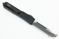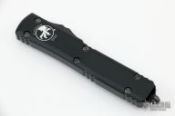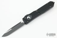 This Ultratech OTF automatic by Microtech features a S/E DLC stonewash finished blade with a standard edge. Black aluminum frame with black hardware and stainless steel clip. Glass breaker. Comes with original box and papers. New from the 2022 Blade Show.