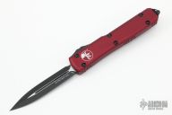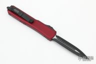 This Ultratech by Microtech features a black double-edged blade. The handle has a MERLOT aluminum handle with black stainless steel hardware and clip. Comes with original box and papers. S/N 195737 and dated 03/2021. Excellent condition.