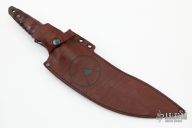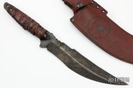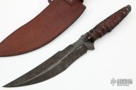 This Altair by TASKnives features an acid etch finished upswept recurve blade with a notched thumbrest, .231" blade stock and 1.68" blade depth, full tang construction. The handle has Ytoba wood scales with wrapping and epoxy. Lanyard hole in pommel. Comes with leather belt sheath. 61-62HRC. New from maker at the 2022 Blade Show!