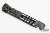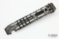 This prybar by Tim Miller is made from 6AL4V Titanium, it is .275" thick, has rubber o-rings holding in a phillips/flathead bit and a 1/4" hex driver for the bit, bottle opener, has lanyard holes and a titanium clip. Comes with COA. New from maker at the 2022 Blade Show.