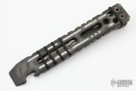 This prybar by Tim Miller is made from 6AL4V Titanium, it is .275" thick, has rubber o-rings holding in a phillips/flathead bit and a 1/4" hex driver for the bit, bottle opener, has lanyard holes and a titanium clip. Comes with COA. New from maker at the 2022 Blade Show.