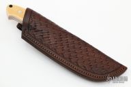 "My interest in knives started when my father gave me my first hunting knife at the young age of 12 years old. I started collecting knives about 1985. In 1995 I started repairing hunting knives, sharpening, and repairing handles so that I could resell them. I also went to swap meets and bought files to make knives which lead to better steel and handle materials. It just evolved into what it is today, over 25 years later. I went from a file and sandpaper to a 72” belt sander. I talked to every knife maker I saw to further my education in developing my techniques to make a better knife. I have never stopped learning new techniques to use. All of this helped me to progress into the knife world. My father taught me to do leather work so I hand make all of the sheaths for the knives. Each knife is numbered and has its very own matching numbered sheath that has been especially molded to that knife."
