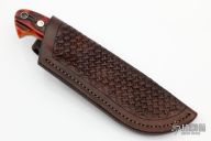 "My interest in knives started when my father gave me my first hunting knife at the young age of 12 years old. I started collecting knives about 1985. In 1995 I started repairing hunting knives, sharpening, and repairing handles so that I could resell them. I also went to swap meets and bought files to make knives which lead to better steel and handle materials. It just evolved into what it is today, over 25 years later. I went from a file and sandpaper to a 72” belt sander. I talked to every knife maker I saw to further my education in developing my techniques to make a better knife. I have never stopped learning new techniques to use. All of this helped me to progress into the knife world. My father taught me to do leather work so I hand make all of the sheaths for the knives. Each knife is numbered and has its very own matching numbered sheath that has been especially molded to that knife."