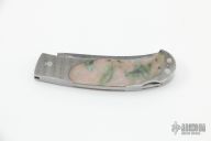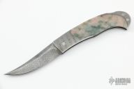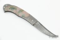 This is a sweet little gents knife by the legendary Tim Herman features a Damascus blade. The handle has a Damascus frame with stone inlays, stainless steel backspacer. Comes with a zippered case. Excellent condition.