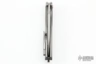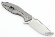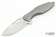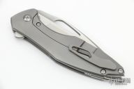 This Arius by Koenig knives features a two-tone blade with thumbhole and flipper, blade has "Burnished w/ PF" finish. The handle has a smooth titanium frame with a titanium tip up clip, titanium backspacer. Has ceramic bearings and a ceramic detent ball. Nice detent, lockup and blade seating. Comes with original box and COA dated April 18, 2022. New condition.