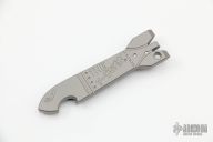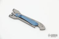 The "F-Bomb" by Matt Cucchiara is a money clip and pocket tool featuring a bottle opener and a pry bar. Made of bead blasted titanium with a bead blasted and anodized titanium clip. New from maker at the 2022 Blade Show Texas.