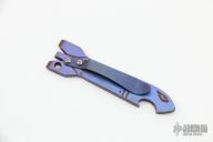 The "F-Bomb" by Matt Cucchiara is a money clip and pocket tool featuring a bottle opener and a pry bar. Made of anodized titanium with a bead blasted and anodized titanium clip. New from maker at the 2022 Blade Show Texas.