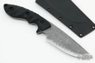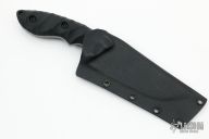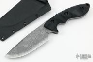 This Master Hunter by Kiku Matsuda features a drop point blade with notched thumbrest, .204" blade stock and 1.794" blade depth, full tang construction. The handle has black G-10 scales, lanyard hole. Comes with a kydex sheath and belt clip. New condition.