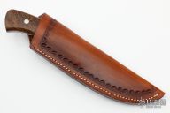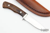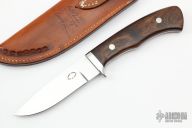 "I have been a knife maker since 1983. I got my start watching George Herron in his shop. He has always been a mentor, answering all of my questions and helping with the little problems of knifemaking. Most of my work is geared toward hunters. Since the most important part of the hunt is not the gun, no matter how much it costs, but a knife that will get the job done comfortably and quickly. I also build a few boots and fighters. All blades are ATS-34 that are professionally heat-treated to a Rockwell 59. All guards, bolsters, and pins are 303 Stainless. All knives are serial numbered. The sheaths are pouch type and are wet-formed to fit each knife."