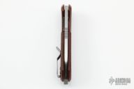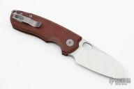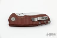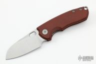 This F5.5 by Urban EDC Supply is a Vox Design. It features a satin finished blade with thumbhole and notched thumbrest. The handle has green canvas micarta scales, blasted titanium liner, backspacer and tip up clip. Rides on bearings, nice detent, lockup and blade seating. Comes with original box and zippered case. Has a few light scuffs, otherwise excellent condition.