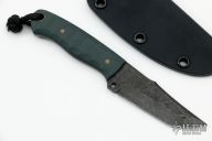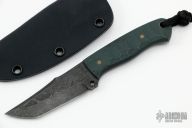 This Tanto Nanite by Tristen Knight features a 80CRV2 blade with .124" blade stock and .902" blade depth, full tang construction. The handle has nicely shaped g10 scales with brass pins. Comes with a kydex sheath. New from maker.