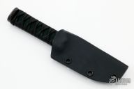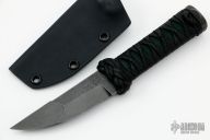 This Meridian Trekker by Tristen Knight features a hand forged black out finished 1085 blade with notched thumbrest, .198" blade stock and 1.04" blade depth, hidden tang construction. The handle has nicely wrapped handle with green and black cord, and Turks head knot at the guard. Steel buttplate. Comes with a kydex sheath. Excellent condition.