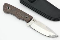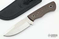 This Falcon Gen 3 by Wirtz Made features a tumble finished drop point blade with swedge and notched thumb rest. 0.130" blade stock and 1.234" blade depth. The handle is comprised of carbon fiber scales over full tang construction and lanyard hole. Includes leather sheath with belt clip and original box . Excellent condition.