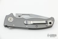 The AD20.5 by Demko Knives features the impressive Shark Lock and an even more impressive price point. The Shark Lock mechanism is situated on the spine of the knife and operated with a ramp-like ‘fin’, allowing you to flip the blade open and closed at will. It's probably the best thing about this knife and design, how quickly it can be deployed and ready for action. It acts as a blade launcher and a little wrist action is all it needs. Comes with original box and extra clip. This one has a stonewashed blade and bead blasted titanium handle. Excellent condition.