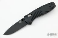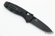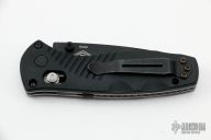 This Mini-Barrage from Benchmade features a black drop point blade with swedge and dual thumbstuds. The handle is comprised black FRN  scales over stainless steel liners. This knife also features the AXIS lock mechanism and sliding safety on spine. Includes original packaging and paperwork. Excellent condition.