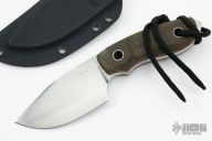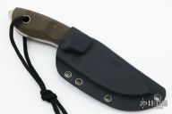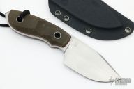 The Jesper Voxnaes designed Bob from Boker Plus Elegance is yet another inspired design. It's a tank of a knife, with a 7 mm thick AUS-8 steel blade! The flat blade grind allows for balanced cutting performance and power. The contoured, three-dimensional canvas Micarta handles offer a secure grip and the tang extends past the scales to create a breaker point. Included is a Kydex sheath. The Bob is a hefty knife with a great feel and an impressive presence. Comes with original sheath, box and papers. Excellent condition. #2475