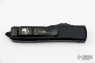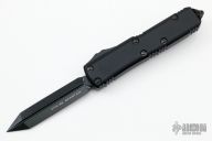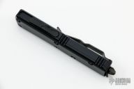 This UTX-85 by Microtech features a DLC spartan double edged blade. The handle has a black aluminum frame with black hardware, black tip down stainless steel clip and glass breaker. Dated 09/2020 and S/N 273.